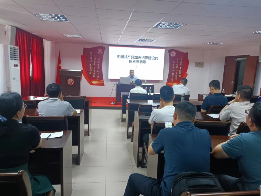 陈位志副院长作题为《中国共产党加强纪律建设的探索与启示》的辅导报告。他为大家讲解了中国共产党百年来对加强纪律建设的重大探索,指出这些宝贵历史经验是我们党弥足珍贵的精神财富,我们需要在汲取经验的基础上不断总结、不断改进,并对如何做好学院党建工作作出了重要分析和指导。他号召全体教职工重视党风党纪建设,奋力推进学院建设发展。