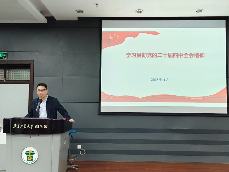 为深入学习贯彻党的二十届四中全会精神,11月26日,图书馆党总支在图书馆大学城校区馆负一楼报告厅开展党的二十届四中全会精神专题学习,特邀我校马克思主义学院副院长张中鹏副教授作专题辅导报告。图书馆党总支书记赵振辉主持,全体职工参加学习。