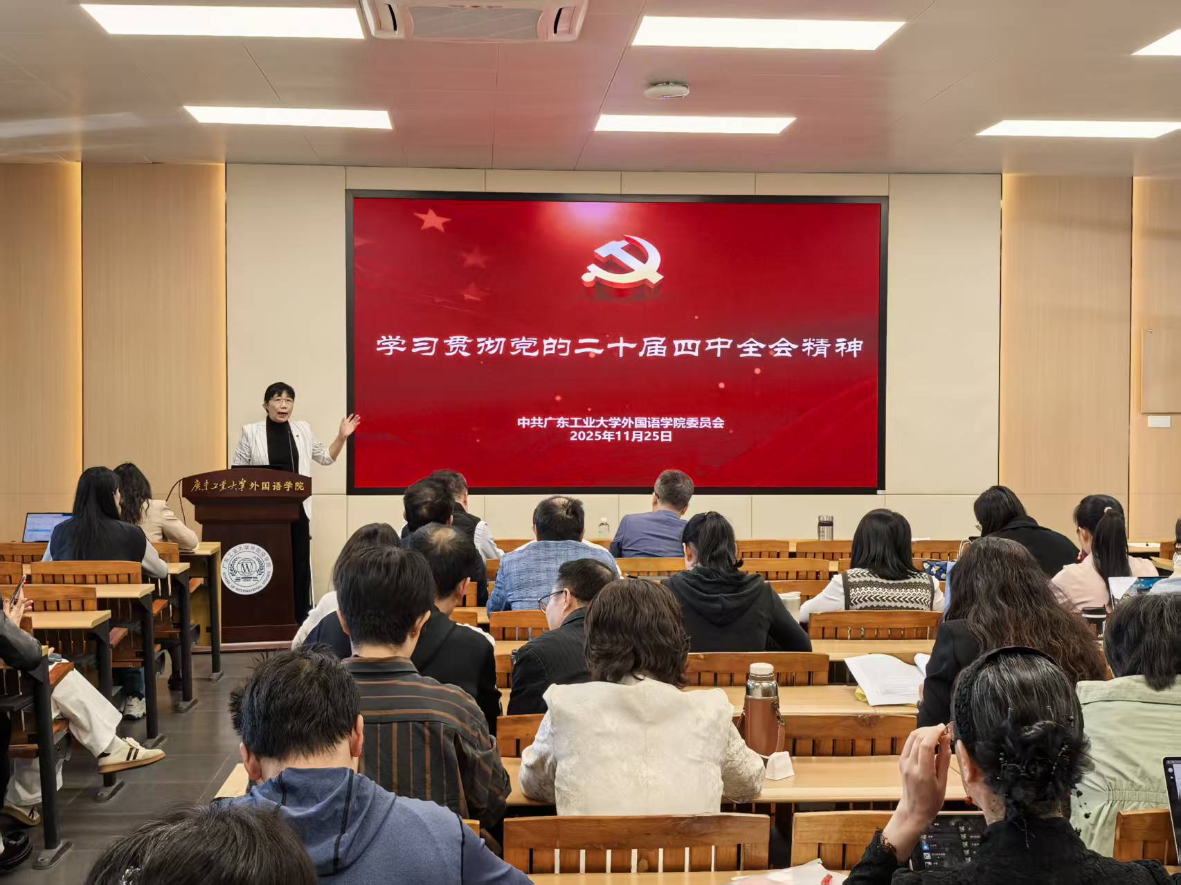 为深入学习贯彻党的二十届四中全会精神,11月25日,外国语学院党委召开党的二十届四中全会精神专题学习会,特邀学校马克思主义学院黄庆林教授作专题辅导报告。学院党委书记刘伟主持,全体职工参加学习。